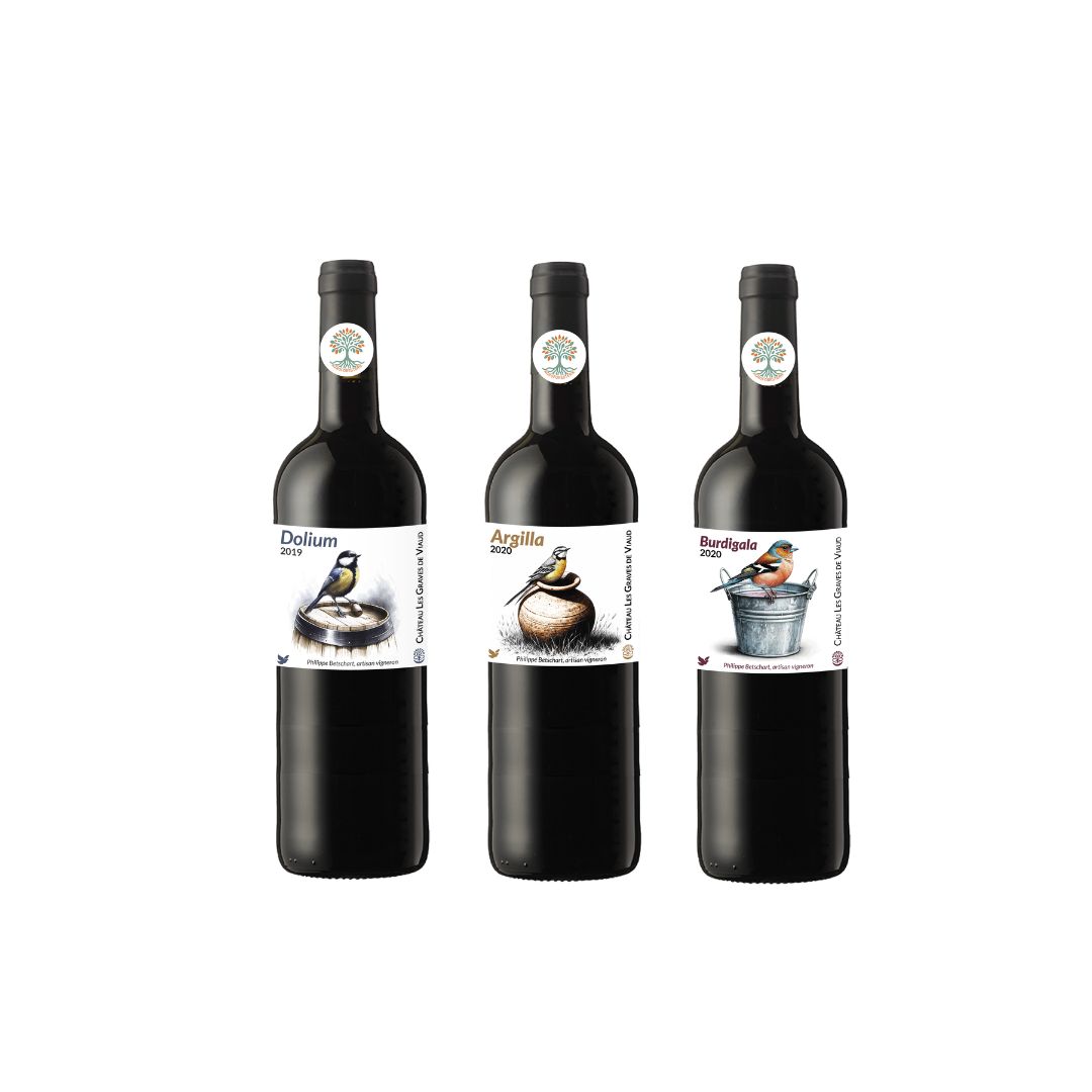 Cette collection témoigne de notre engagement pour un vignoble vivant. Depuis 15 ans en biodynamie et 10 ans en agroforesterie, nos sols riches abritent une biodiversité active où les oiseaux, alliés naturels de nos vignes, trouvent un refuge protecteur. Trois vins, trois élevages, trois expressions : ces cuvées sincères reflètent l'équilibre entre le vivant et le temps, au cœur d'un écosystème durable